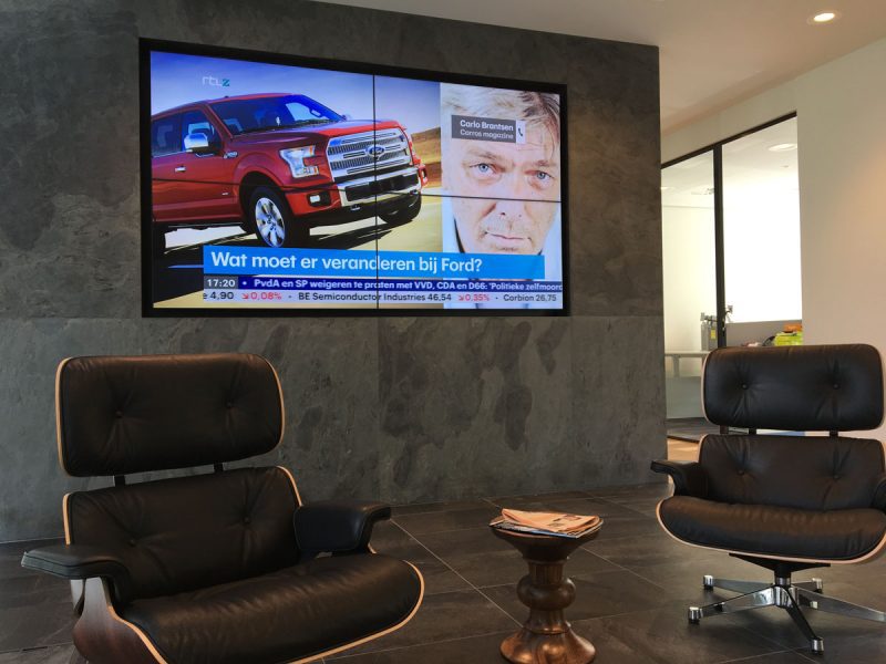 De beeldverhouding waarover ik hierboven spreek houdt je overeind door iedere keer zowel horizontaal als verticaal een beeldscherm toe te voegen. Dus als je begint met een enkel scherm dan is de volgende stap de 2×2, daarna volgt 3×3 en zo verder. Op deze manier past de content altijd over het gehele oppervlak van de videowall. Maar let op! De content die je in de videowall stopt heeft een bepaald aantal pixels. Als dat full HD is (dus 1920×1080 pixels) dan wordt dat zelfde aantal pixels steeds verdeeld over de gehele videowall. Als je de videowall te groot maakt met een te klein aantal pixels wordt het beeld vager. En dat is niet mooi. Probeer daarom vanaf een 3×3 zeker met 4K content (dus 3840×2160) te werken. Daarmee zorg je dat het beeld helder blijft en past op de videowall.